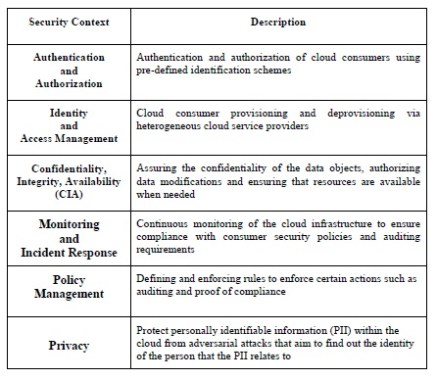This section reviews the research on security solution such as authentication, authorization, and identity management that were identified in Table 3 [10] as being necessary so that the activities of cloud providers are sufficiently secure.