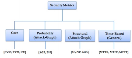 These metrics associate probabilities with individual entities to quantify the aggregated security state of the network. A few examples that fall under this category are Attack Graph-based Probabilistic (AGP) and Bayesian network (BN) based metrics [23-25]. In AGP each node/edge in the graph represents a vulnerability being exploited and is assigned a probability score. The score assigned represents the likelihood of an attacker exploiting the exploit given that all prerequisite conditions are satisfied. In BN based metrics the probabilities for the attach graph is updated based on new evidence and prior probabilities associated with the graph.