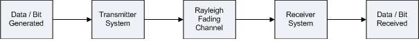 As shown at figure 6 the multi hop system introduced 2 hops, such as : 1. the hop between base station (BS) and mobile station (MS) via relay, 2. the hop between BS and mobile station (MS) directly without relay. Fading channel distribution realized in 2 hops are Rayleigh fading channel in i.i.d distributed. Because of Rayleigh channel, received signal performance of 2 hops system should be affected by mobility of either relay or MS velocity. Figure 7 explained SISO (Single Input Single Output) system model (1 hop system) in which its performance will be compared to 2 hops system performance [9].