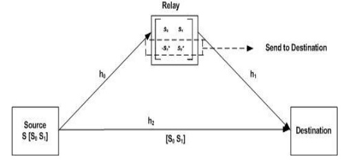 The application of STBC was not only good for the multi-antenna system or MIMO, but also for cooperative communications with multi hop system. It can improve the system transmission performance significantly even with single-antenna [2]. The application of STBC cooperative communication is called the Distributed-STBC (DSTBC). The system scenario is described as the situation displayed in figure 3.