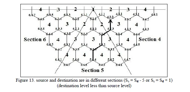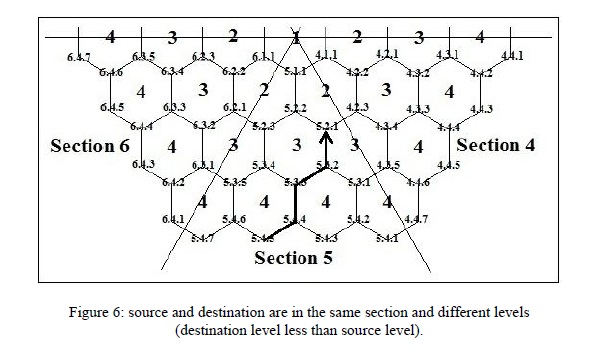 The following examples explain the above routing cases. For this purposed, we consider a network of a Hex-cell topology with 4 levels; i.e. HC (4) as shown in Figure 4.