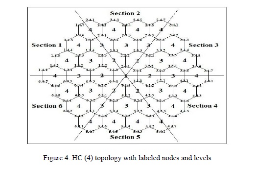 1- The Hex-Cell topology is divided into six sections labeled from left to right (clockwise) and numbered from 1 to 6, as shown in figure 2.