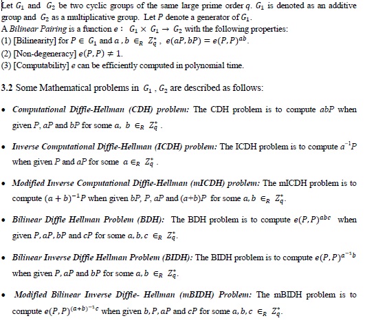 stand for the Bilinear Diffie-Hellman,Symmetric External Diffie-Hellman and Bilinear Inverse Diffie-Hellman assumptions,