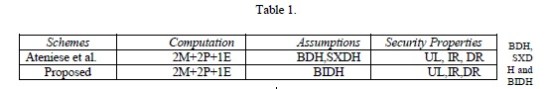 1, computation cost of our scheme is as good as Atenniese et al. [1] schemes.
