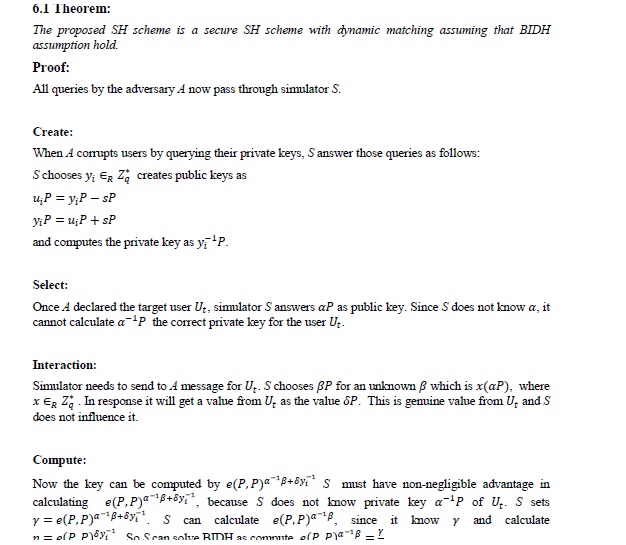 The proposed SH scheme is a secure SH scheme with dynamic matching assuming that BIDH assumption hold.
