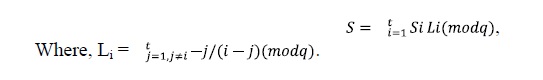 Secret sharing scheme allows a secret to be shared among a group of users which are also called shareholders. The secret is shared in such a way that no single user can deduce the secret from his share alone. In order to construct the secret, a user needs to combine a sufficient number of shares. (t, n) threshold secret sharing represents that the secret is distributed to n share holders, and any t or more users can reconstruct the secret from their shares, but t-1 or fewer users cannot get any information about the secret. Here, k is the threshold parameter such that 1 ≤ t ≤n. The first threshold secret sharing scheme Identity based security schemes for ad hoc routing network was proposed by Shamir [9] in 1979, which is based on polynomial interpolation. To distribute a secret S among n users, a trusted authority chooses a large prime q, and randomly selects a polynomial f(x) = S + a1x…. + at-1xt-1(modq); where Li a1,……, at-1 ϵ Zq. The trusted authority computes each user’s share by Si =f(i) and securely sends the share Si to user i. Then any k users can reconstruct the secret by computing: