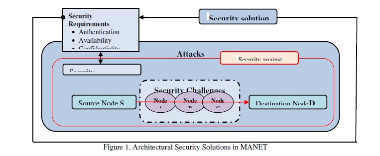 MANET has two dimensions in protection: the first dimension is protection of guidance operations through communication between the nodes; and the second dimension is the protection of the data to be exchanged. The security solutions to protect MANET are in the level before the attacks so as to form a defense line that provides protection. [5] But MANET characteristics pose challenges to the development of security solutions, because of a variety of attacks exploiting vulnerabilities in MANET caused by challenges. [6]