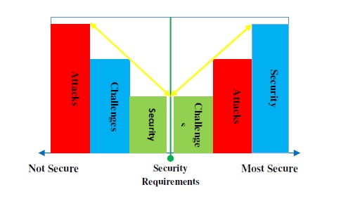 It has been shown in the architectural security solutions for MANET that the security mechanism in MANET is integrated. Each component depends on the other component, and therefore we conclude that the relations between the security components in MANET, as shown in Figure (2) show that the security requirements are just a starting point when we want to put security solutions. The relationship is as follows: when the level of security is low, it is attributed to the challenges facing the development of security solutions, leading to the increase in attacks. On the other hand, when challenges are few, there are fewer attacks on the MANET. This is an indicator of raising the level of security in MANET. The relationship shows that the challenges are an obstacle to the development of some security solutions for MANET network.