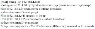 DTT IP address is essential for most of the communication within INF. It is not possible hosts to communicate without sending and receiving packets. Thus, as it has been illustrated in the previous figure the hacker has effectively identified the IP address of the target INF by receiving a reply from (192.168.1.44).