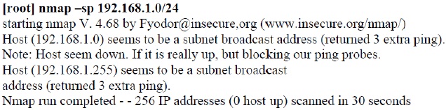 The expected output of executing nmap without satisfying ENG property would appear to the hacker as: