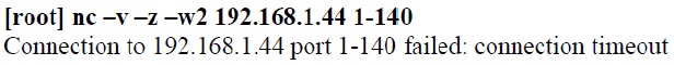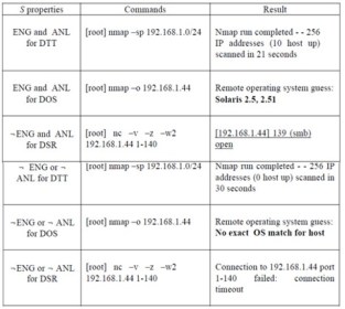 Let assume that hacker has effectively DTT of the victim, the following step of S objective is DOS. ENG property is important through DOS of the target system. It is impossible to DOS without the presence of ENG between the hacker and their victim. The following figure illustrates execution of nmap command line for DOS when ENG is not satisfied.
