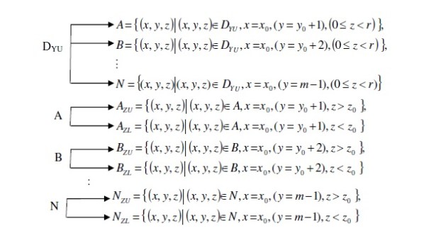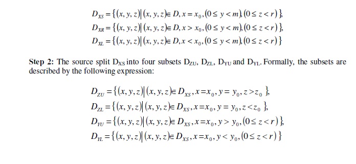Step 5: The intermediate node that represented by (x0, y0+1, z0) will be act as a source on its surface, when it receives the subset DYU, it will split it as follows:-