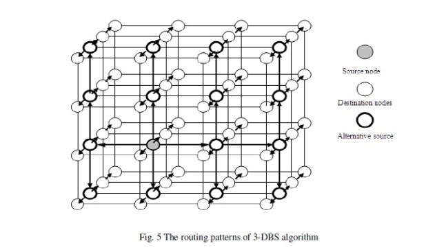 The source would simultaneously send these messages by six ports (3-DBS algorithm is all ports). In this step all diagonal subsets of source will be reached.
