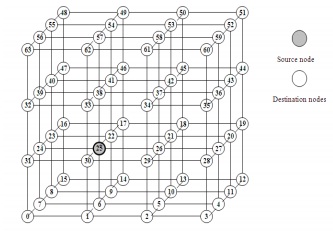 Suppose that the coordinate of the source node u0 is represented by (x0, y0, z0) with the Hamiltonian labeling ( ) 0 l u , and D represents the all nodes in the 3-D mesh with the Hamiltonian labeling l .