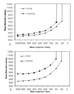 Fig. 8 Comparison of 3-DHB with 3-DSPHB. (a) With small message latency ß =10; (b) with large message latency ß =100