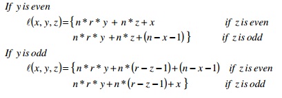 Each node in 3-D mesh can be assign a unique number using the above labeling function. The Hamiltonian model can be assigned each node in 3-D mesh a unique label starts from 0, followed by 1, and so on until the last node labeled mnr-1.