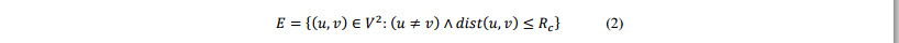 We primarily present the unit disk graph model. Let us assume a graph G = (V, E), where all nodes have the same transmission range denoted by Rc. The UDG model defines the set E of the edges as follows: