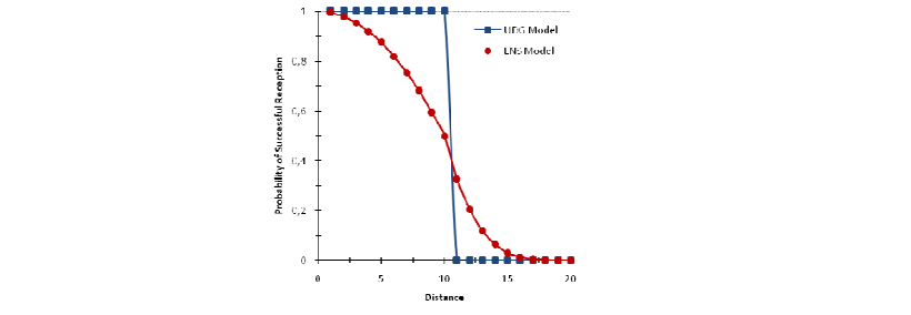 Figure 1: Probability of successful reception in UDG and LNS models