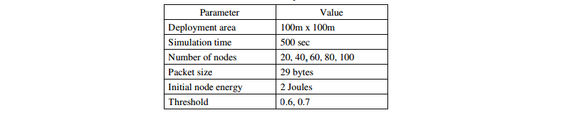 In our experiments, we conducted extensive simulations with the LNS model to evaluate the performance of the proposed contribution (FTLR scheme) in terms of the ratio of lost packets and energy consumption. For that, we used a network topology in which nodes are randomly distributed between (x = 0, y = 0) and (x = 500, y = 500). We performed simulations using two distinct thresholds Thresh1=0.6 and Thresh2=0.7 for probability of reception without errors. Table 1 summarizes the simulation parameters used for these evaluations.