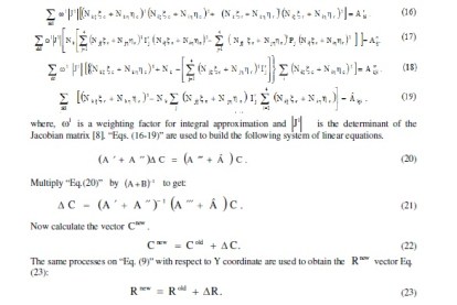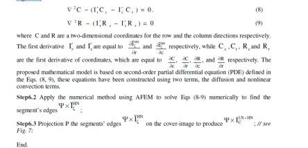 AFEM is applied to find the numerical formulas defining in Eqs. (8-9). However, these formulas are always subject to evaluation with regards to the satisfactory security. The numerical solution of IIS has been reached by solvating both Eqs (8-9) simultaneously with a specific number of iteration using cipher key k . Consequently, it becomes necessary to modify FEM to reduce the time and memory requirements. AFEM with modified Newton’s method is used to find the variation-vectors dR and dCand from Eq. (8), considering the C coordinated and using the weighted residual method, we get: