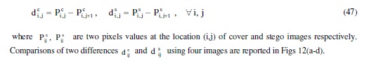 The difference values of the horizontal neighboring pair for both cover and stego images are computed using the formula in Eq. (47):
