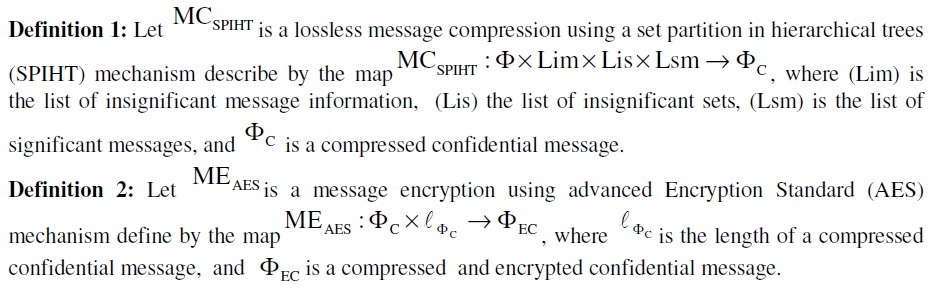Compression and Encryption functions have been applied on a confidential message ( C F) at the sender side; these functions support the first safety layer of the proposed hiding algorithm. The formal definitions of both functions are explained in the following:
