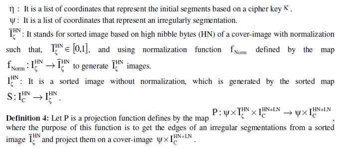 The hiding algorithm is used at the fourth safety layer by accepting a modified cover-image and produces a stego-image ψ×Is . We suggested new idea of image steganography according to the following definition.