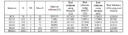 Table 4. Comparison between the proposed MACO algorithm, , NMACO, classical ACO [22], and MACO algorithms [23].